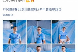 体育资讯2月28日讯 今日,深圳新鹏城中场周定洋更新社媒,晒出数张自己身穿新鹏城球衣的定妆照,并配文写道:“2026,冲冲冲!”