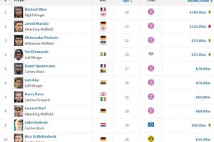 体育资讯03月20日讯 今日德转更新了德甲球员身价,拜仁前锋奥利塞身价涨至1.4亿欧元,前十排名如图。