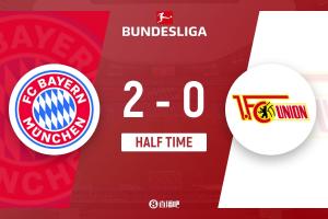 半场-拜仁暂2-0柏林联合 奥利塞格纳布里破门伦纳特·卡尔中柱