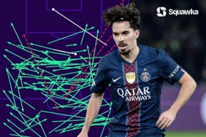 据Squawka统计,维蒂尼亚本赛季至今参加10场欧冠比赛,其中7场成功传球达到100次。
